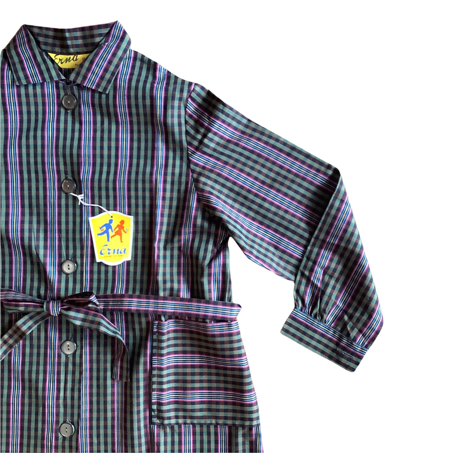 French Vintage 1970's Green Check Dress/ Blouse / 6-8Y