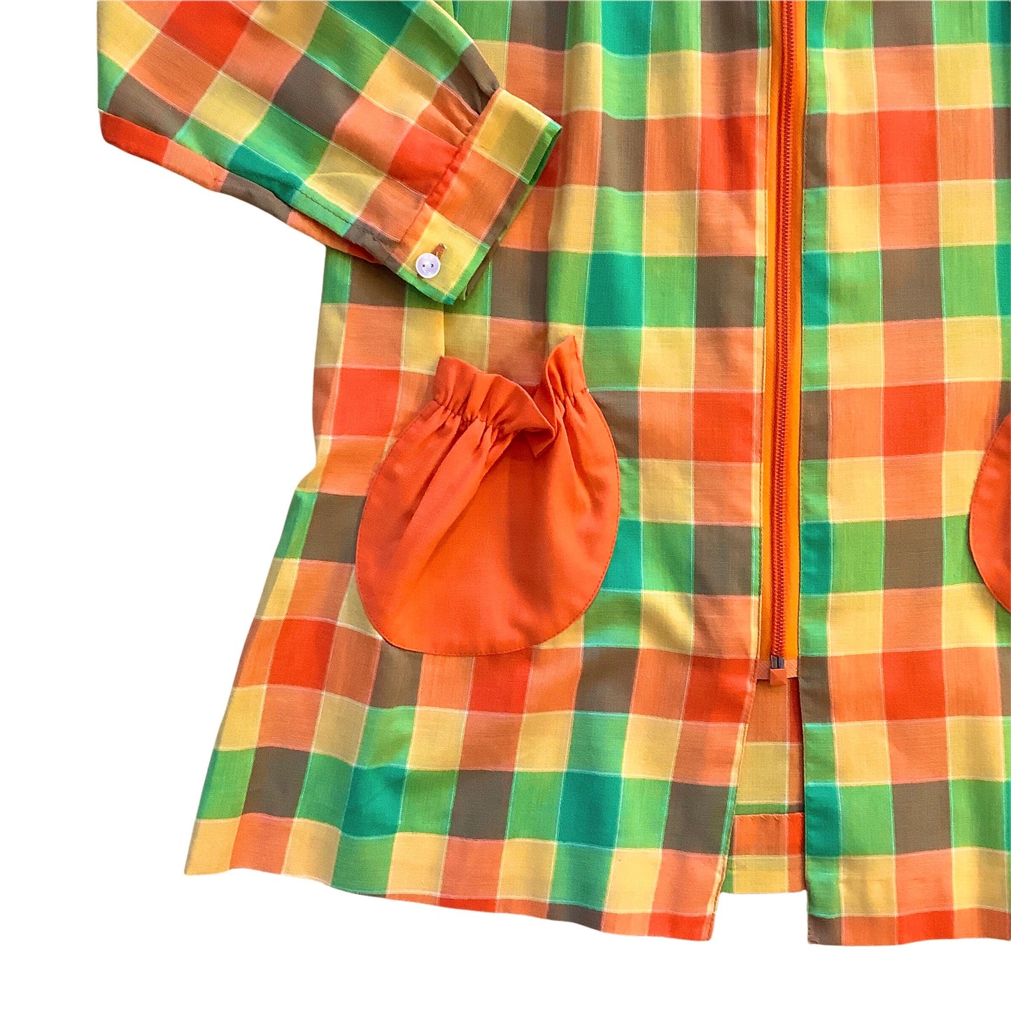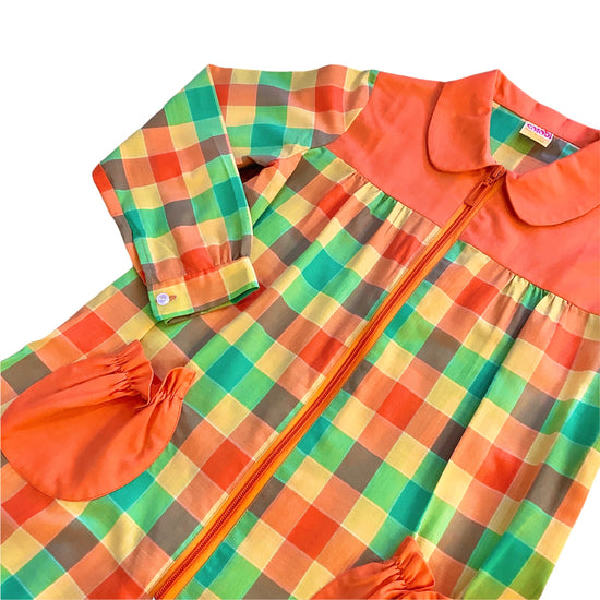 Vintage 1970's Check Green / Orange Dress / Blouse / 5-6Y
