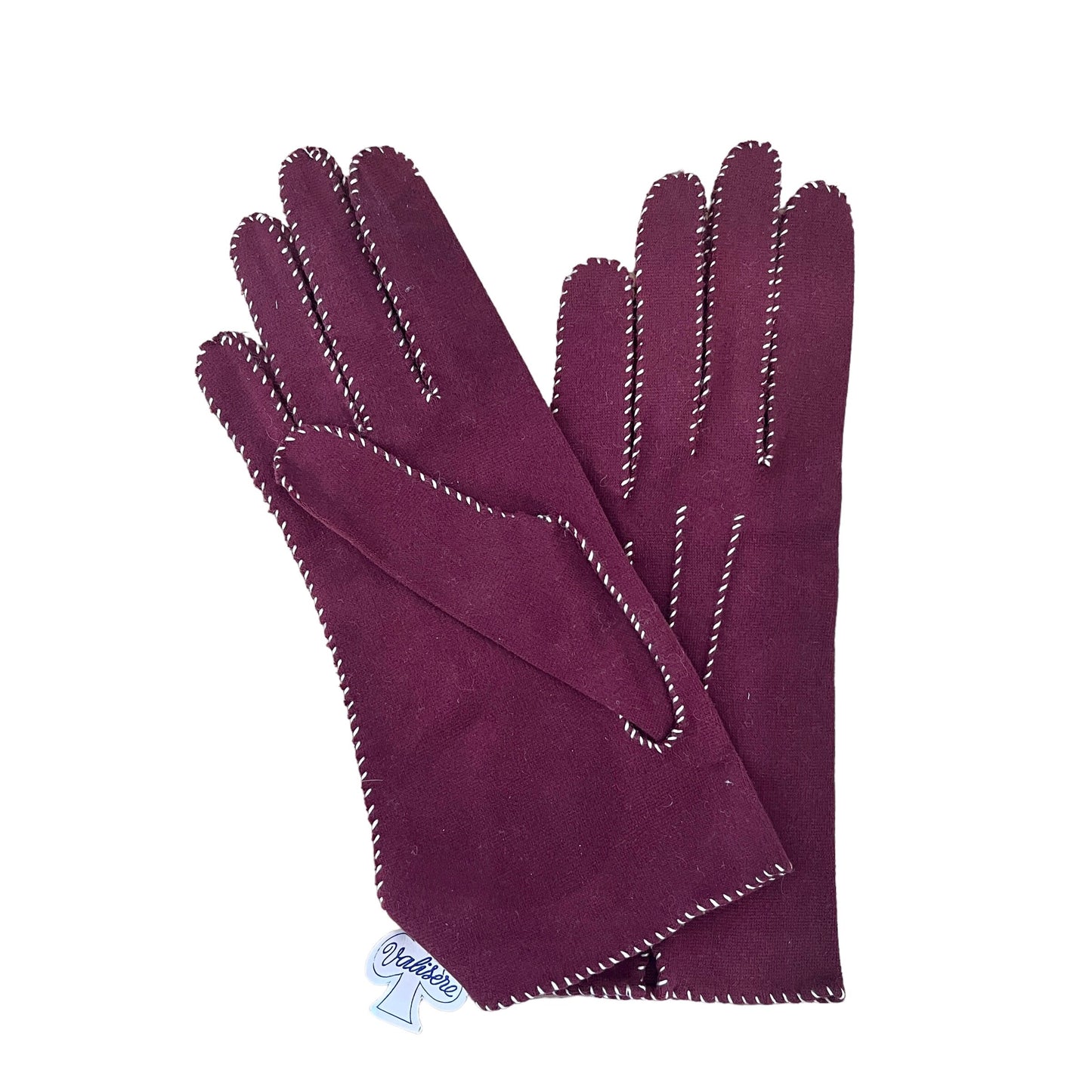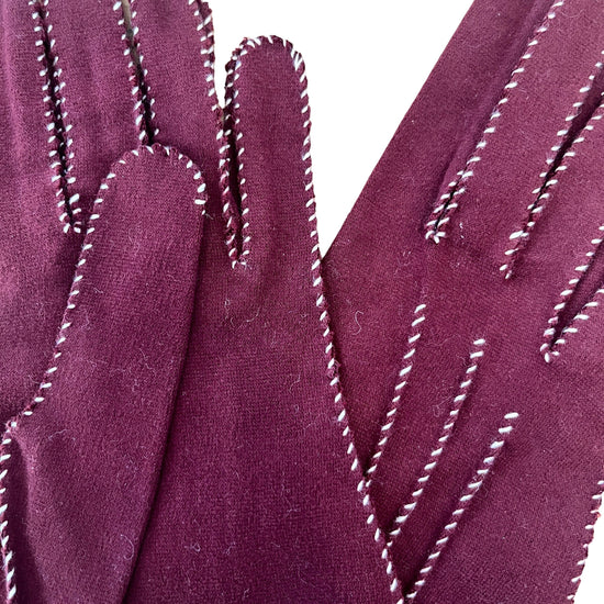 Vintage Delicate 70s Dark Red Suedine Gloves 5-6Y